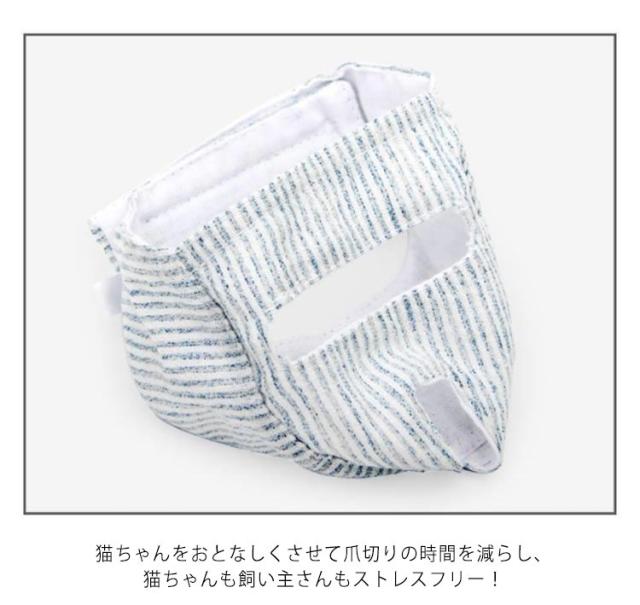 | 目隠しをするとおとなしくなるネコの習性を活用した猫用マスク。 ●爪切りが苦手な猫さんに! ●薬塗りにお困りの方に! ●美容、入浴、手術中にも役に立つ ●自宅でトリミング・ブラッシングする際の補助にも。 猫ちゃんをおとなしくさせて爪切りの時間を減らし、猫ちゃんも飼い主さんもストレスフリー! 病院に行かなくて良いので猫のストレスを減らせ、お財布にも優しい! | |