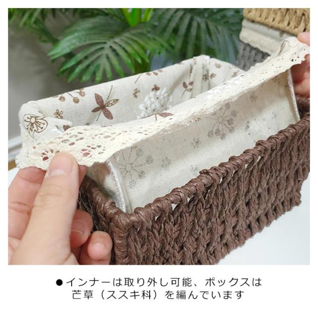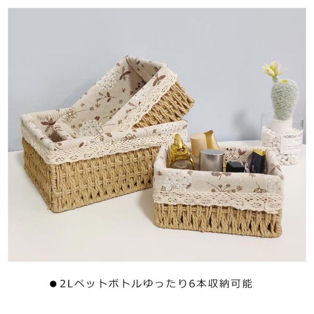 | ●大切な衣類も優しく収納 ●取っ手穴があり引き出す際や持ち運びに便利! ●バスタオルや衣類の収納に ●2Lペットボトルゆったり6本収納可能 ●インナーは取り外し可能、ボックスは芒草(ススキ科)を編んでいます ●サイズS〜M。畳んだ洗濯物の一時入れなどに家族のサイズに合わせてお選びいただけます | |