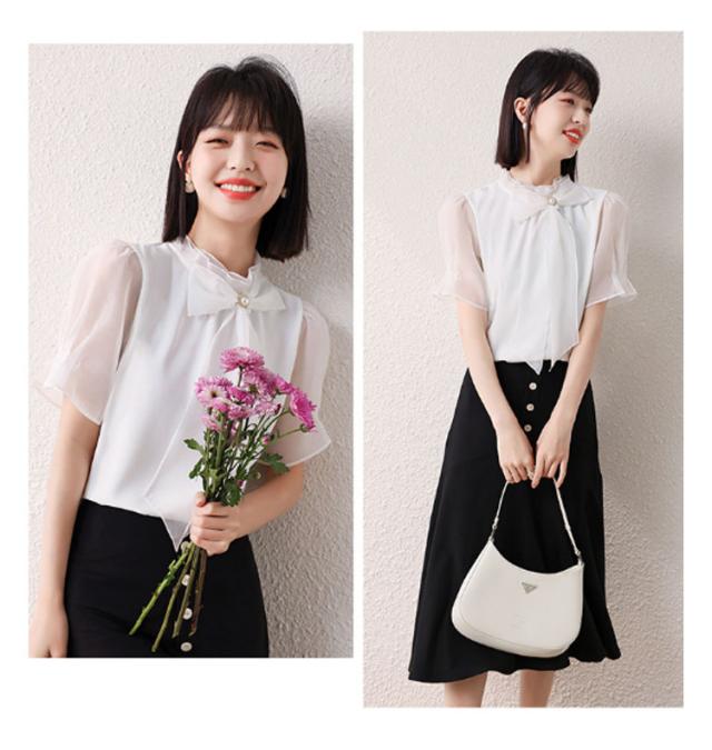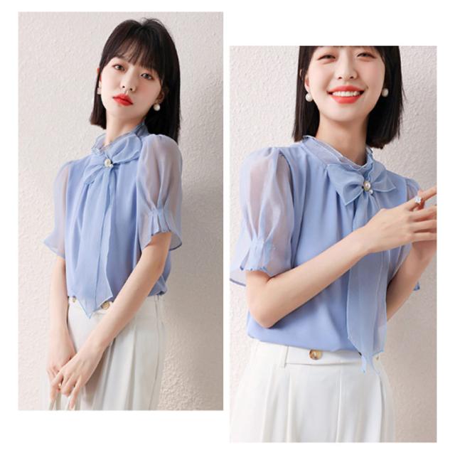 送料無料 大きいサイズ レディース チュニック シフォン リボン 半袖 チュニック トップス ブラウス 春夏 チュニック 夏 夏服 夏物 10-30代 40代 50代 60代 安い 可愛い おしゃれ