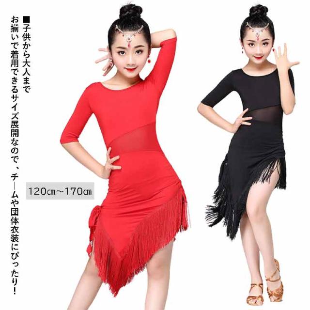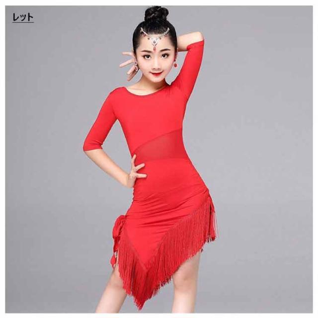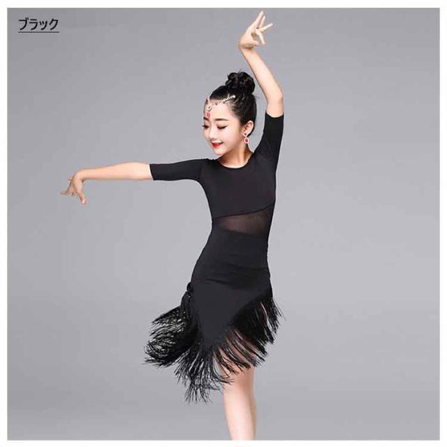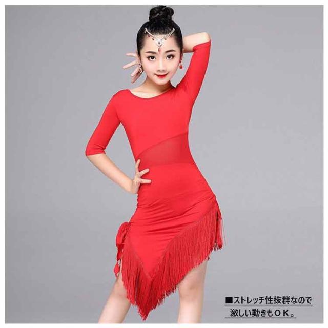 ダンス衣装 キッズ ラテンダンス 子供 ダンスウェア 女の子 フリンジ フリル シースルー 五分袖 キッズ用 競技着 練習服 ダンスウエア 子供用 社交ダンス衣装 ステッジ衣装 キッズ用 競技着