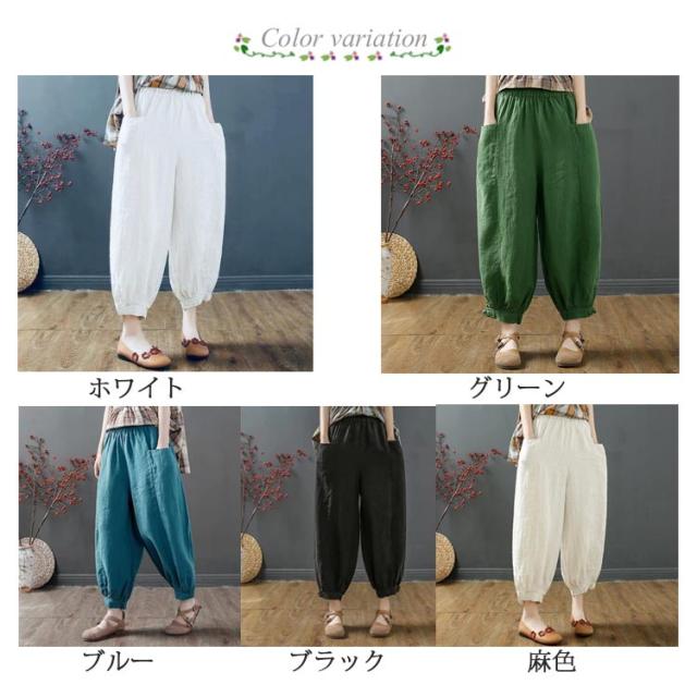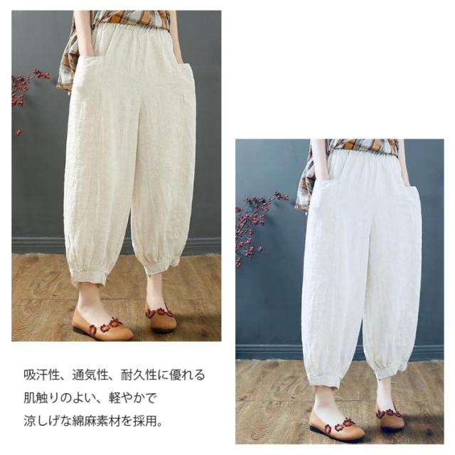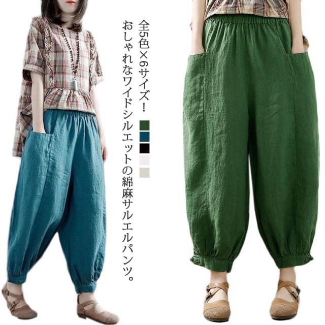 サルエルパンツ レディース アラジンパンツ ワイドパンツ 送料無料 綿麻 パンツ サルエル パンツ 薄手 リネンパンツ バルーンパンツ カジュアル ウエストゴム 春 夏 秋 ボトムス 大きいサイズ ナチュラル 無地