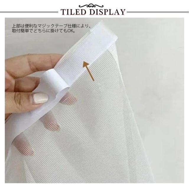 | シートカバー等に使用されるボリュームレースのカフェカーテンです。 上部は便利なマジックテープ仕様により、取付簡単でどちらに掛けてもOK。 レース生地の下部はスカラーカットしてあり、エレガントな空間を演出します。 透け透け感が景色も彩光も邪魔をせず、とても清潔でお洒落な雰囲気になります。 エアコンを使い終わったオフシーズンにこのカバーをかけて、防塵、防汚対策になる!エアコンの直撃風がもたらす不快感を解消! 縦長の小窓や棚、カラーボックスなどの目隠しにもご使用いただけます。 | |