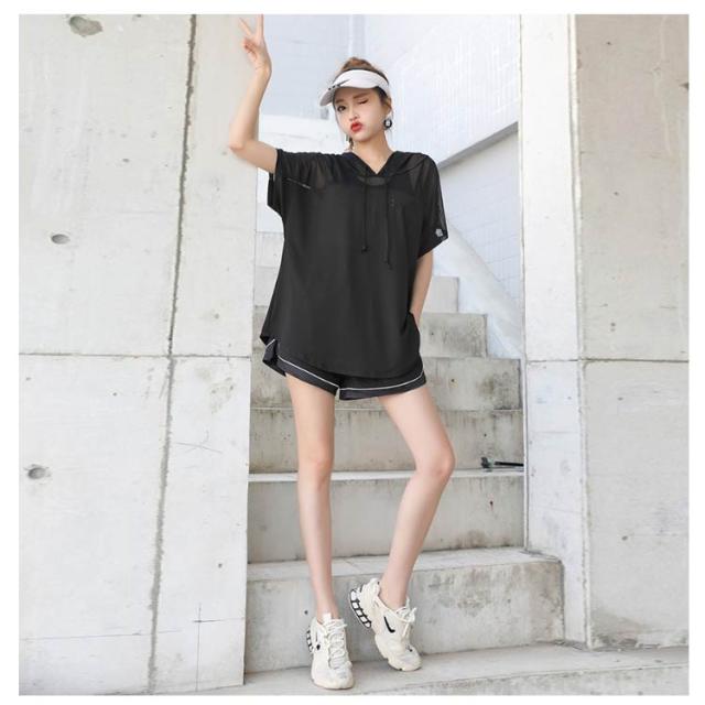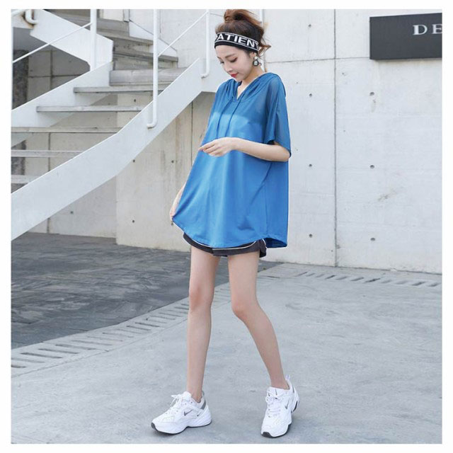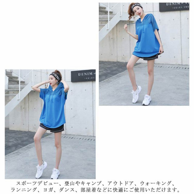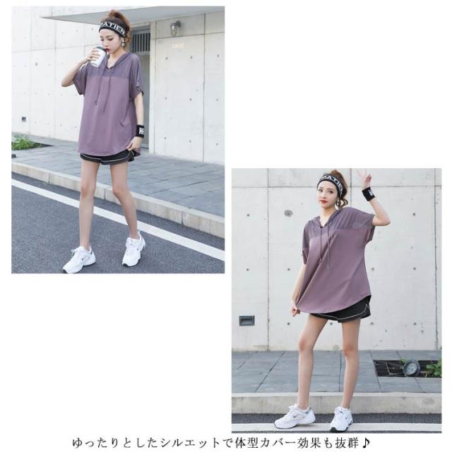送料無料 トップス レディース スポーツウェア Tシャツ ジャージ 半袖 ヨガウェア スポーツパーカー トレーニングウェア 半袖Tシャツ フード付き 大きいサイズ ダイエット ランニングウェア トレーニングウェア フィットネスウェア ヨガウェア ジムウェア ゆったり