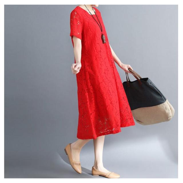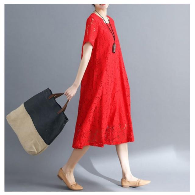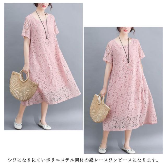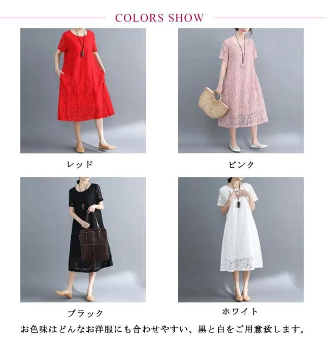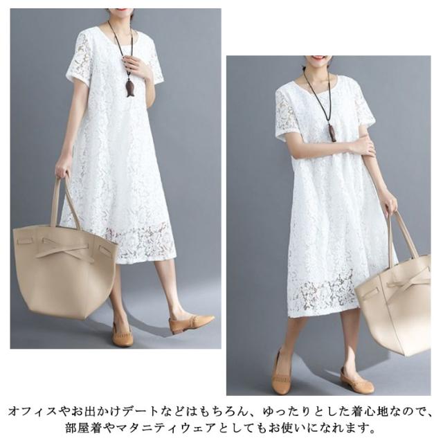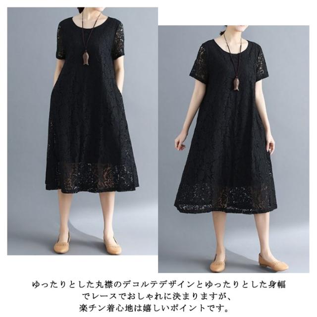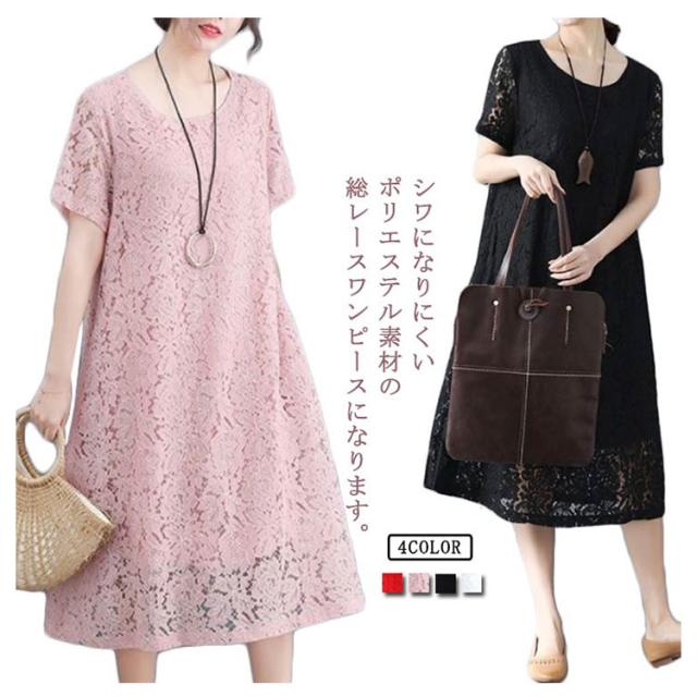 ワンピース レースワンピース 夏 半袖ワンピ ロング丈 ワンピ ドレス パーティードレス 結婚式 パーティー フォーマル 通学 通勤 ゆったり 大きいサイズ 母の日 20代 30代 40代 50代 60代 70代
