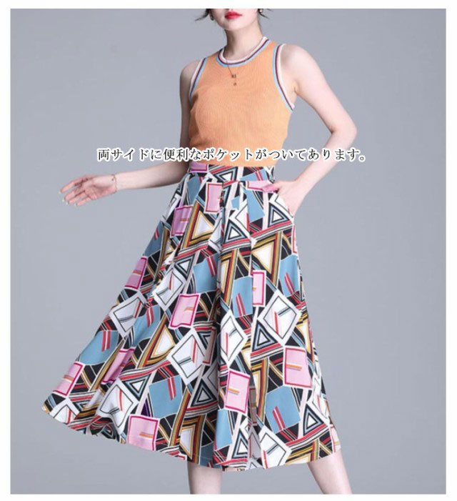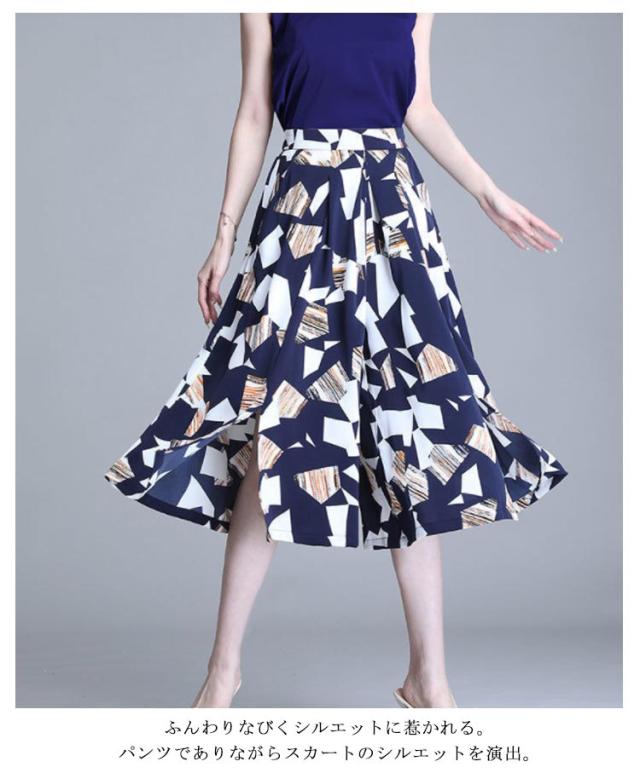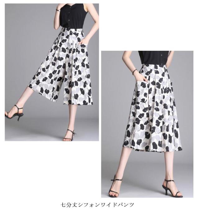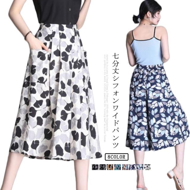 【送料無料】ワイドパンツ レディース 快適通気 フレアパンツ 七分丈 シフォン ワイドパンツ ウエストゴム ガウチョパンツ 花柄 総柄 ボトムス 夏 きれいめ ゆったり 涼しい シフォン 夏 ポケット付き フレア カジュアル きれいめ 大きいサイズ