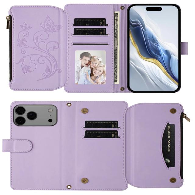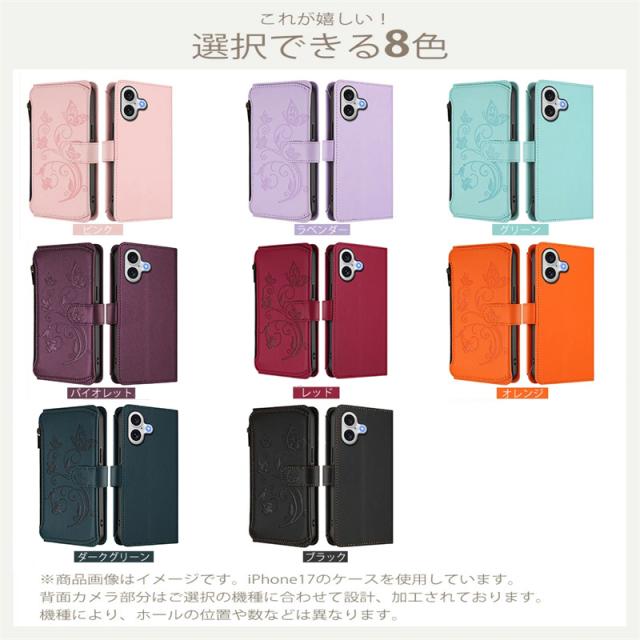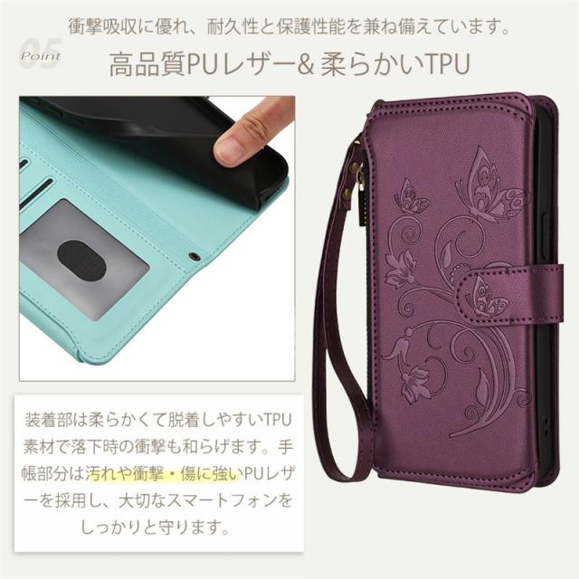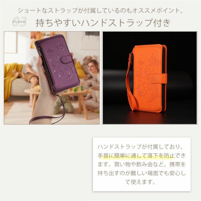 〇 高級感あふれる花と蝶のエンボスデザインが魅力的な手帳型ケース