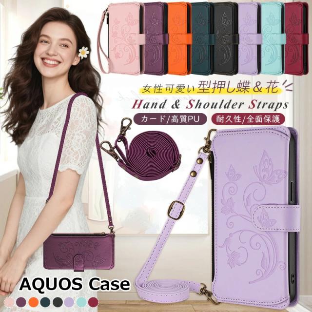 aquos sense9 ケース ショルダー アクオス センス9 aquos sense10 wish5 SHG14 R10 R9 SH-51E 花と蝶 多機能 財布型 手帳型 アクオス ウィッシュ4 ショルダー aquos wish4 ケース スマホケース 手帳型ケース スタンド機能 脱着式 ストラップ ハンドバッグ風