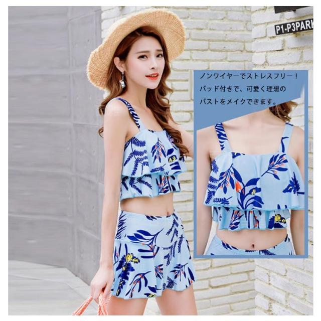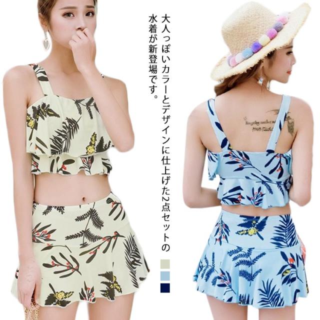 水着 レディース 体型カバー 2点セット フィットネス 上下セット スイムウェア パッド付き セパレート 花柄 インナーパンツ付き お洒落 温泉 ビーチ 通気性 可愛い
