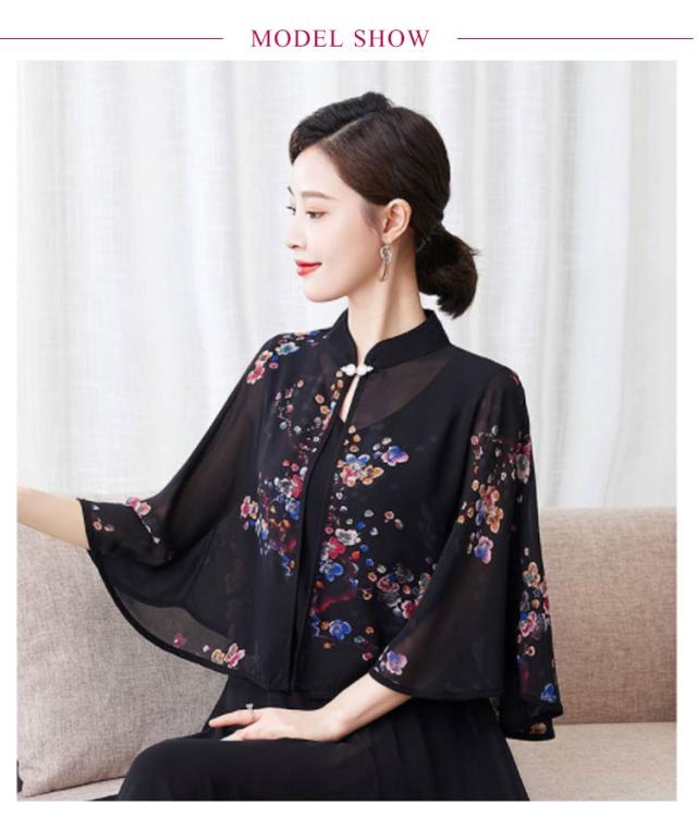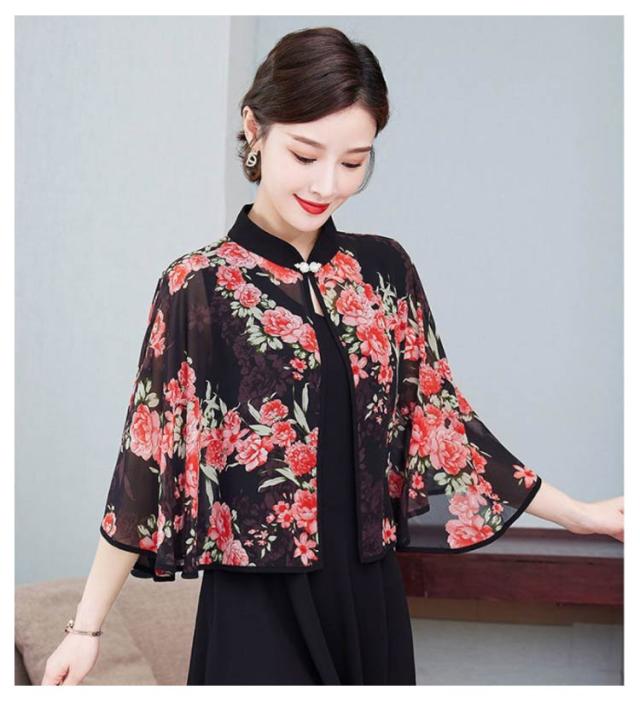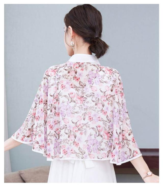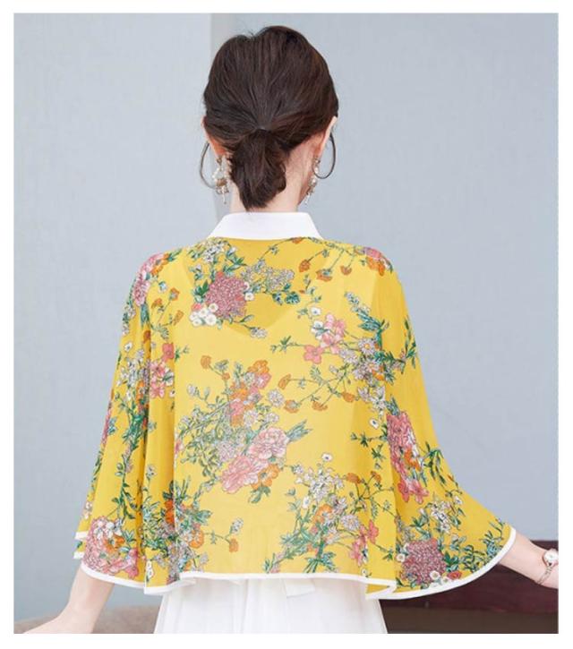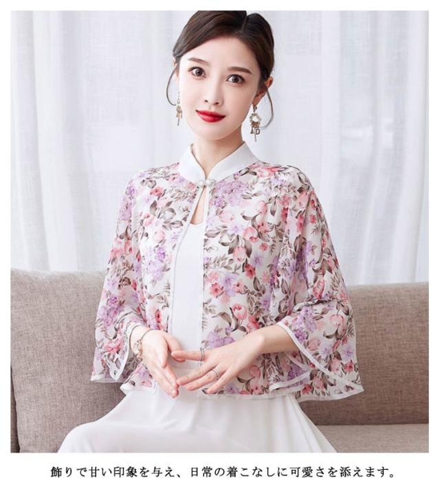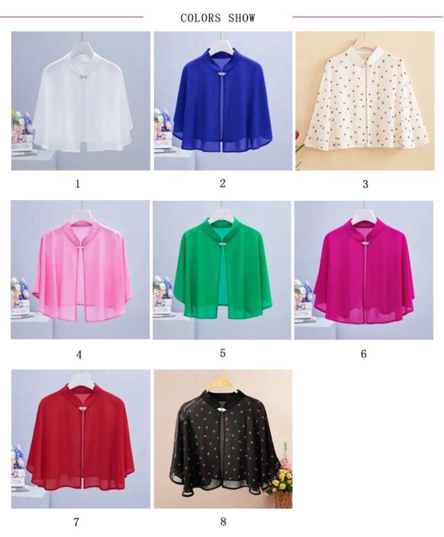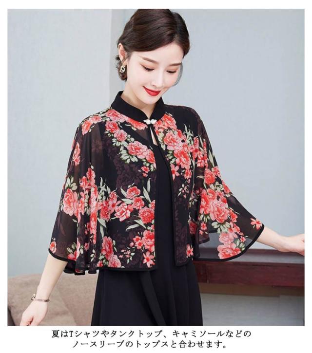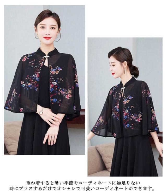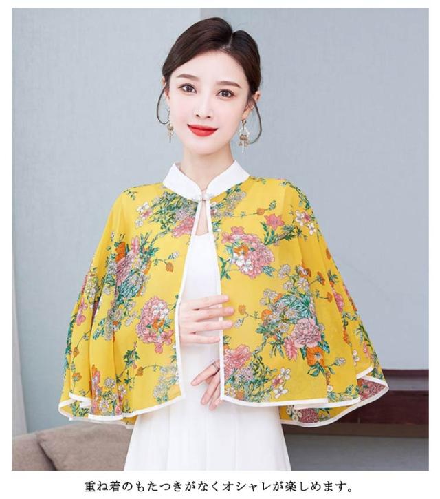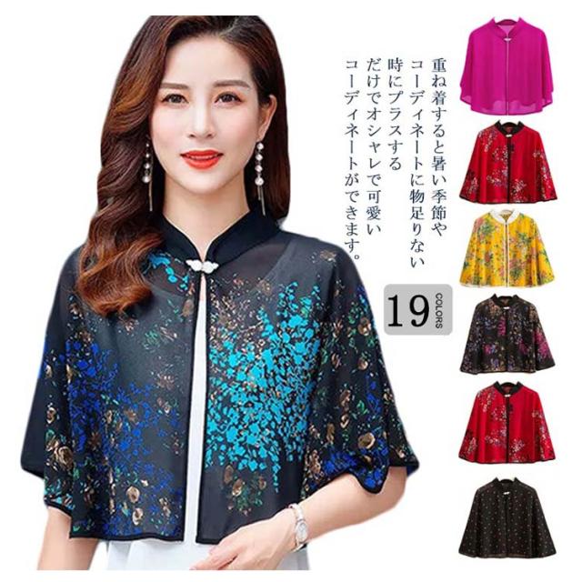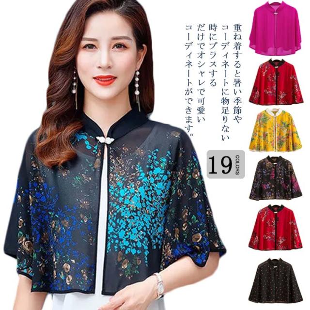 全19色 シフォンマント 日焼け防止 付け襟 マント ボレロ ケープ シフォン サマーカーディガン 袖なし ドルマンシルエット 大きサイズ 体型カバー レイヤード 冷房対策 春夏 無地 花柄 シンプル