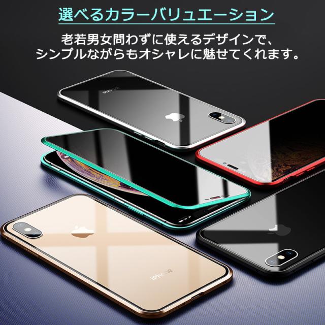 iPhone Galaxy 全面保護 覗き見防止 / 前面透明9H強化ガラスケース 両面ガラス アルミバンパー マグネット アイフォン 耐衝撃 バンパー クリア ケース iPhone12 iPhone11 iPhone7 iPhone SE(第2世代) iPhone13 13Pro 13mini iPhone8 SE2 Galaxy S10 S20 Plus S20+ S21 S21+