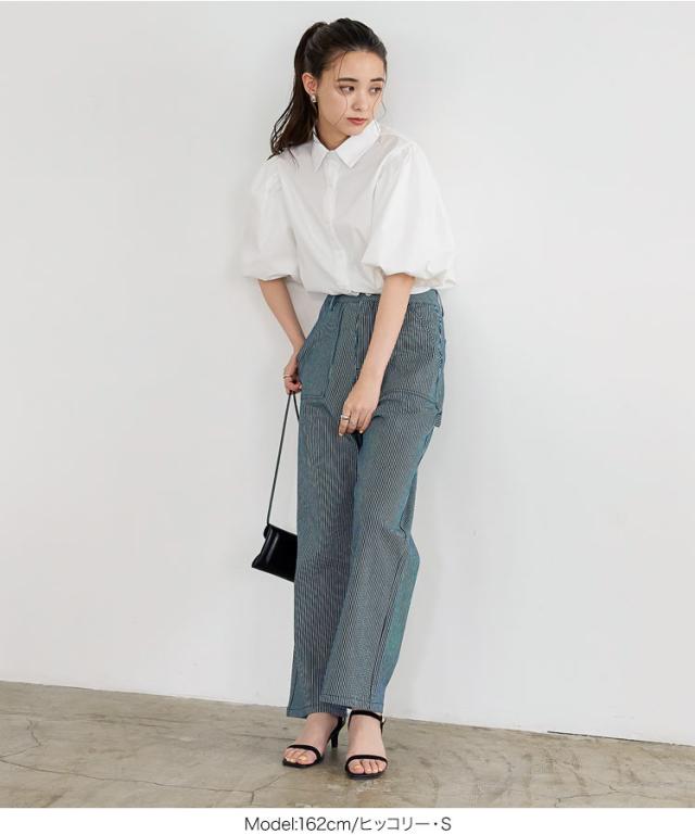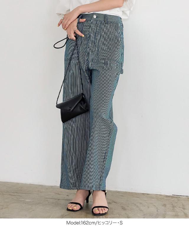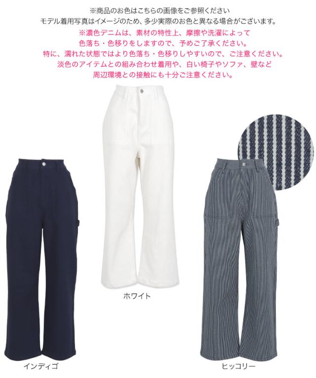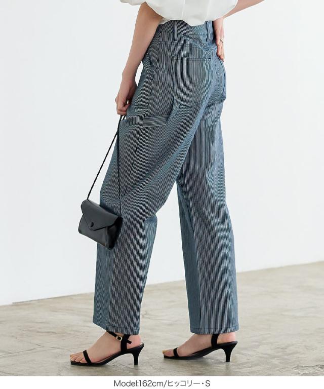 春新作 ペインターパンツ M3661 入荷済 ペインターパンツ ハイウエスト カジュアル ヒッコリー ホワイト インディゴ デニム メンズライク