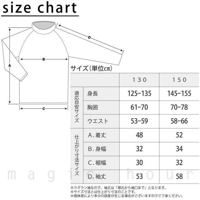 130: 身長 125〜135cm 年齢 9〜10才 150: 身長 145〜155cm 年齢 13〜14才 |