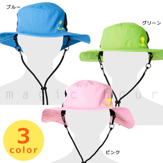 水辺やアウトドアで便利なあご紐付きなので、風で飛ぶ心配もありません♪