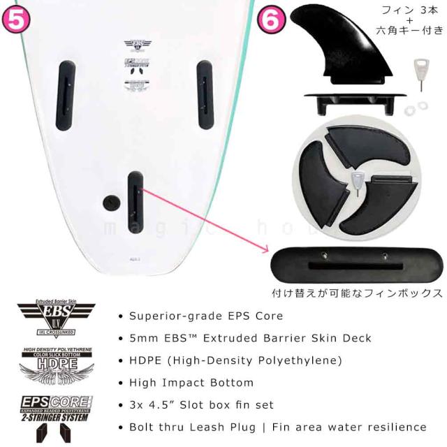 長さ 6フィート(182.8cm) 幅 48.5cm 厚み7.6cm 重さ2.7kg 浮力 49L フィン3本+六角キー付き お好みのフィンに交換可能 |