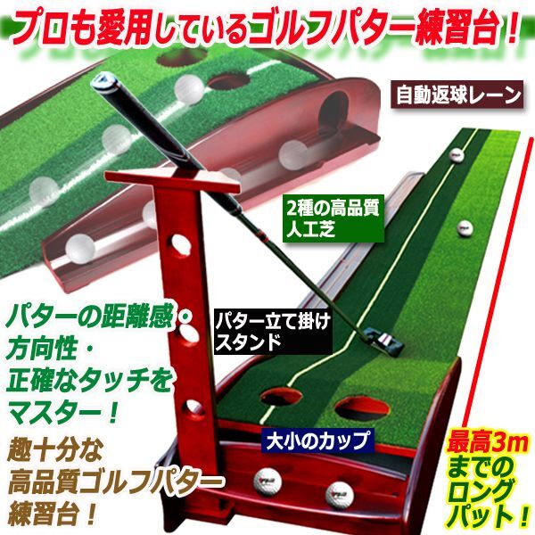 プロも愛用!2種の高品質人工芝ロング3mゴルフパター練習台[自動返球レーン配備] (プレイインテリア クラブ フローリング リビング軌道)
