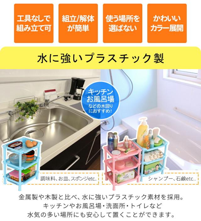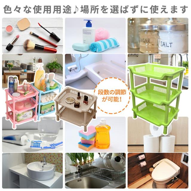 収納ラック 3段 キッチン 調味料ラック バスルーム 浴室収納 整理 収納棚 ストレージラック プラスチック コスメ収納 トイレ収納 小物入れ