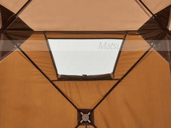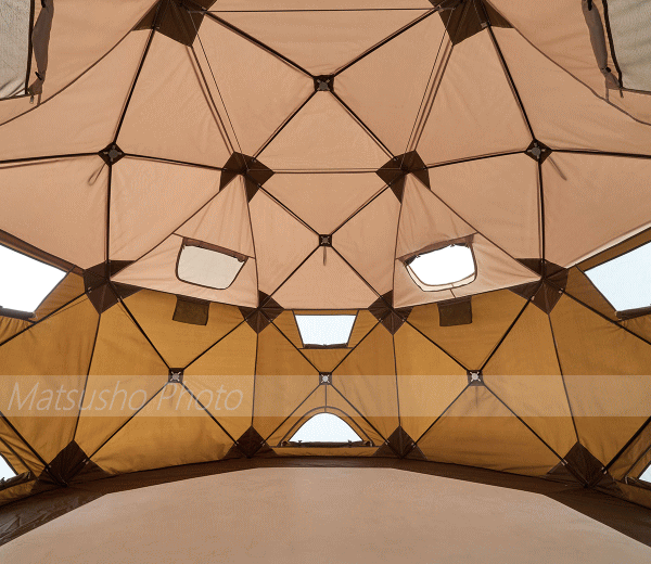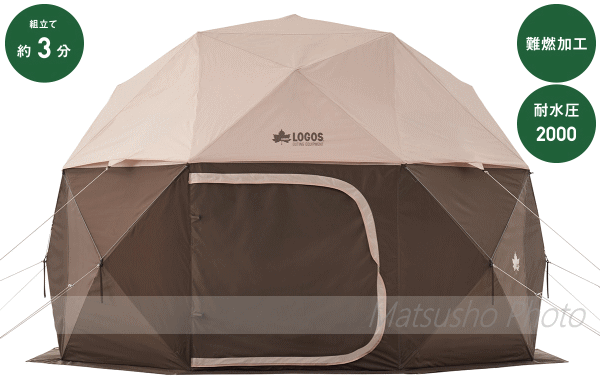 組立て約3分!耐風性に優れた大型ドーム。幅およそ3mの大型ドームにかかわらずパネルを搭載したシステムにより約3分で組み立て可能!どんぐりに似た形状がユニークなドーム形タープです。生地とフレームが一体になっているのでパーツが少なく設営も簡単。ハーフフライが付いているので日差しを和らげる事ができます。またスコープウィンドウがついているので星の観察には最適。冬にはワカサギ釣りなどいろいろなアクティビティに活躍します。持ち運びに便利な専用の収納バッグが付いています。■総重量約15.4kg■サイズ約幅290×奥行290×高さ220cm■収納サイズ約縦24×横91×高さ24cm■耐水圧[トップカバー]2000mm[フライシート]2000mm■主素材[フレーム]ソリッドグラスファイバー[ジョイント]アルミ[トップカバー]難燃性ヘビーポリオックス[フライシート]難燃性ヘビーポリオックス[メッシュ]ポリエステル■構成:本体、トップシート、ロープ、ペグ、収納バッグ、ハンマー、小物袋■難燃加工:米国基準CPAI-84適合※耐水圧は摩擦や経年劣化とともに低下していきます。