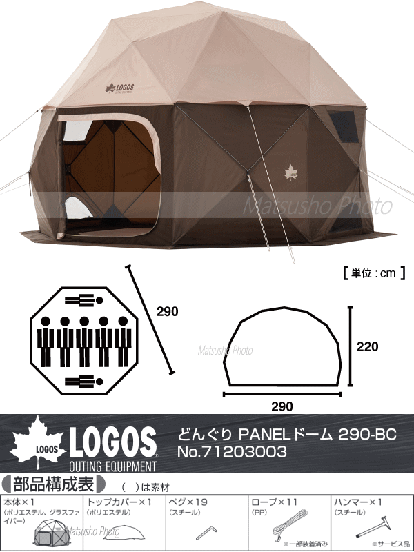 ロゴス テント 大型ドームテント ドーム形タープ ファミリー 組立て約3分 8角形 難燃加工 大型テント 収納バッグ付き LOGOS どんぐり PANELドーム 290-BC 71203003