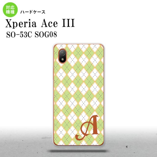 SO-53C SOG08 ワイモバイル Xperia Ace III スマホケース 背面ケース ハードケース アーガイル 緑 グレー +アルファベット