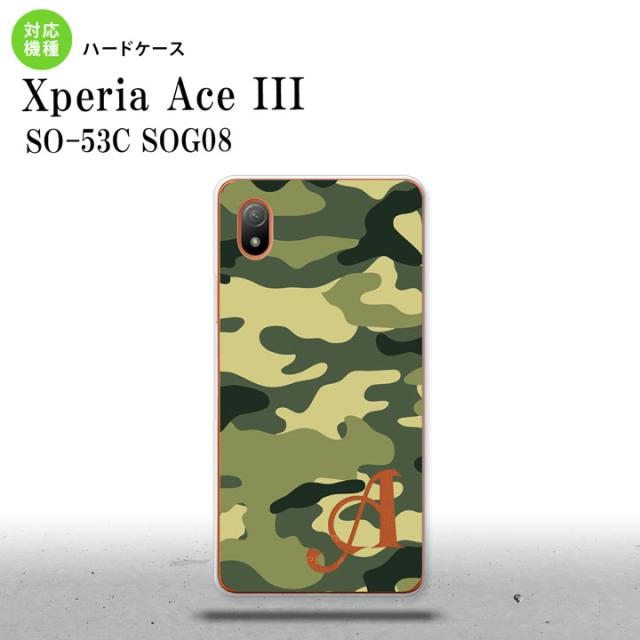 SO-53C SOG08 ワイモバイル Xperia Ace III スマホケース 背面ケース ハードケース ウッドランド 迷彩 A 緑 +アルファベット 2022年 6月発売 nk-so53c-1157i