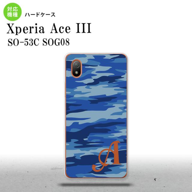 SO-53C SOG08 ワイモバイル Xperia Ace III スマホケース 背面ケース ハードケース タイガー 迷彩 A 青 +アルファベット