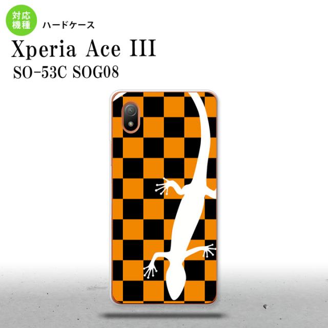 SO-53C SOG08 ワイモバイル Xperia Ace III スマホケース 背面ケース ハードケース トカゲ 市松 オレンジ