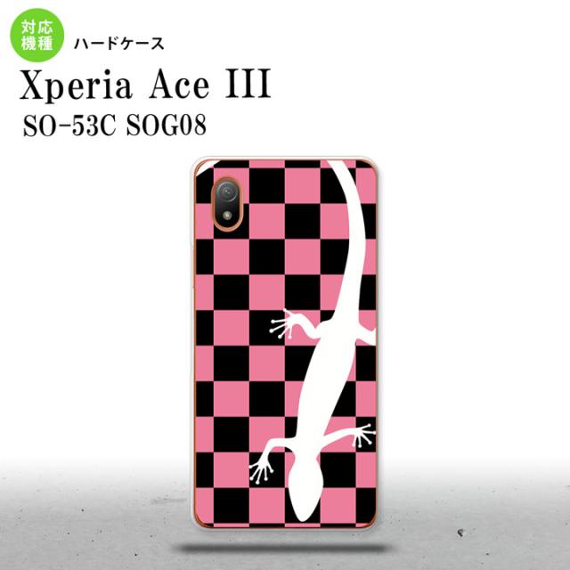 SO-53C SOG08 ワイモバイル Xperia Ace III スマホケース 背面ケース ハードケース トカゲ 市松 ピンク