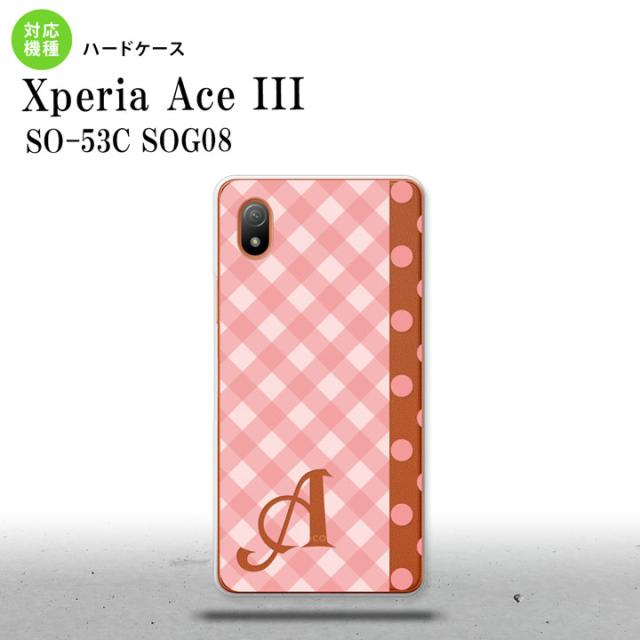 SO-53C SOG08 ワイモバイル Xperia Ace III スマホケース 背面ケース ハードケース チェック ドット ピンク +アルファベット