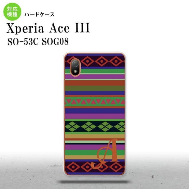 SO-53C SOG08 ワイモバイル Xperia Ace III スマホケース 背面ケース ハードケース エスニック ボーダー 緑 +アルファベット 2022年 6月発売 nk-so53c-1563i