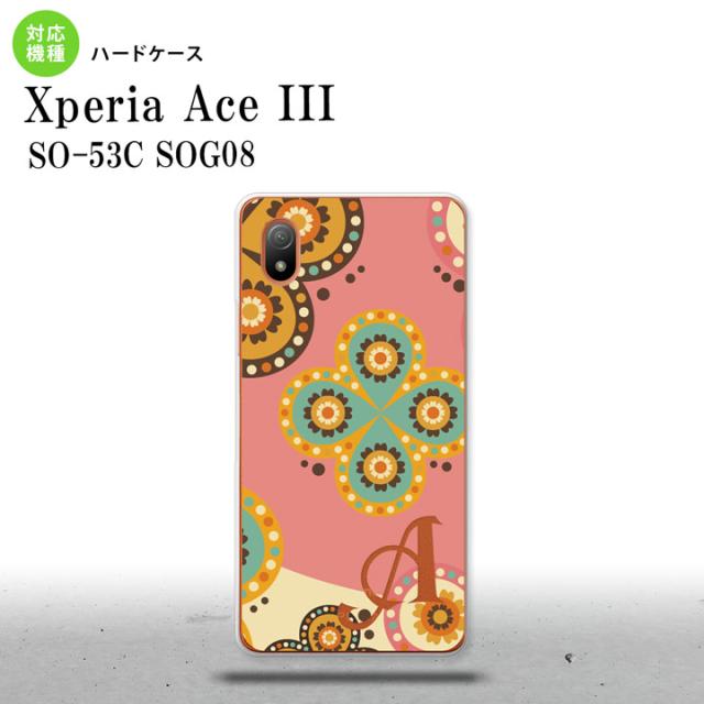 SO-53C SOG08 ワイモバイル Xperia Ace III スマホケース 背面ケース ハードケース エスニック 花柄 ピンク ベージュ +アルファベット