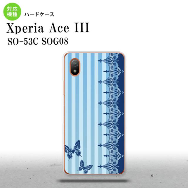 SO-53C SOG08 ワイモバイル Xperia Ace III スマホケース 背面ケース ハードケース バタフライ 蝶 レース 青