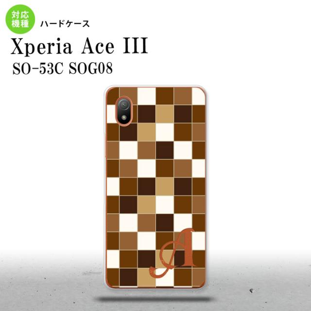 SO-53C SOG08 ワイモバイル Xperia Ace III スマホケース 背面ケース ハードケース スクエア モザイク 茶 +アルファベット