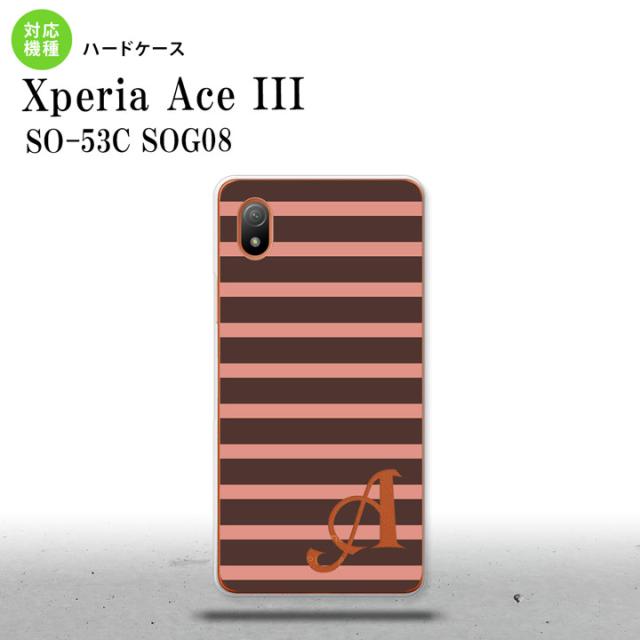 SO-53C SOG08 ワイモバイル Xperia Ace III スマホケース 背面ケース ハードケース ボーダー 茶 ピンク +アルファベット