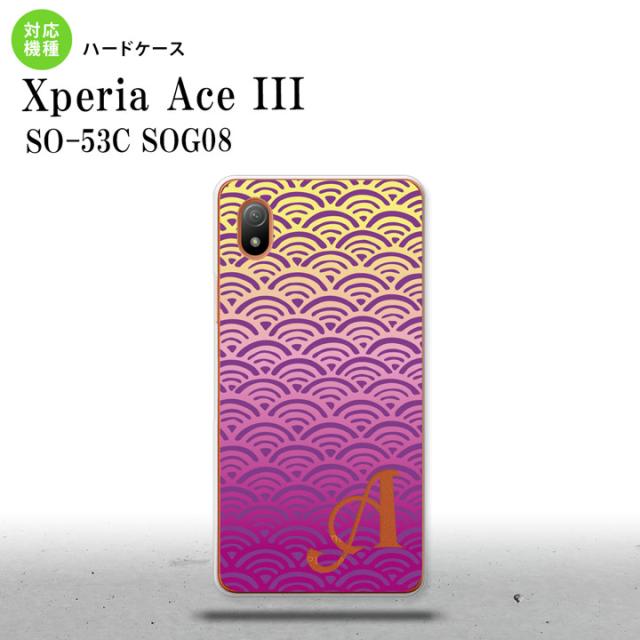 SO-53C SOG08 ワイモバイル Xperia Ace III スマホケース 背面ケース ハードケース 青海波 紫 黄 +アルファベット