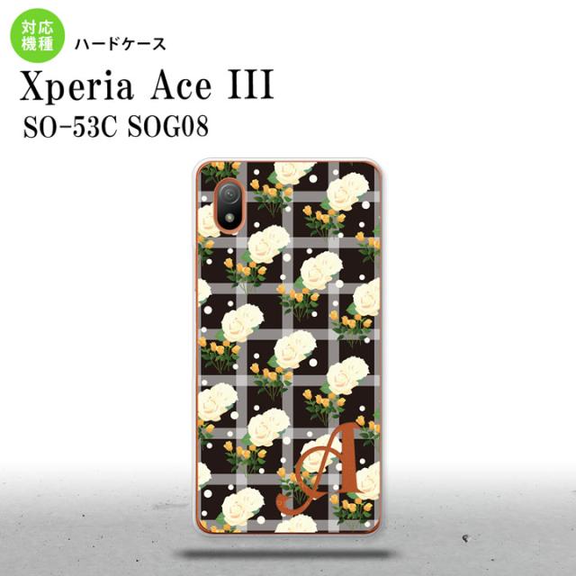 SO-53C SOG08 ワイモバイル Xperia Ace III スマホケース 背面ケース ハードケース 花柄 バラ チェック 黒 +アルファベット