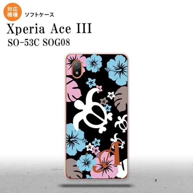SO-53C SOG08 ワイモバイル Xperia Ace III スマホケース 背面ケースソフトケース ホヌ ハイビスカス 黒 +アルファベット 2022年 6月発売 nk-so53c-tp1106i