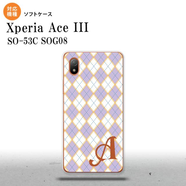 SO-53C SOG08 ワイモバイル Xperia Ace III スマホケース 背面ケースソフトケース アーガイル 紫 青 +アルファベット 2022年 6月発売 nk-so53c-tp1409i
