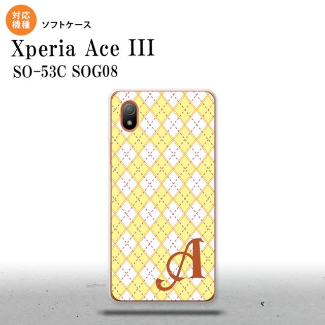 SO-53C SOG08 ワイモバイル Xperia Ace III スマホケース 背面ケースソフトケース アーガイル 黄 紫 +アルファベット 2022年 6月発売 nk-so53c-tp1405i