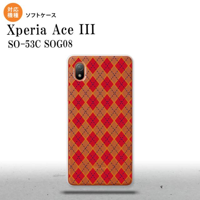 SO-53C SOG08 ワイモバイル Xperia Ace III スマホケース 背面ケースソフトケース アーガイル クリア 赤