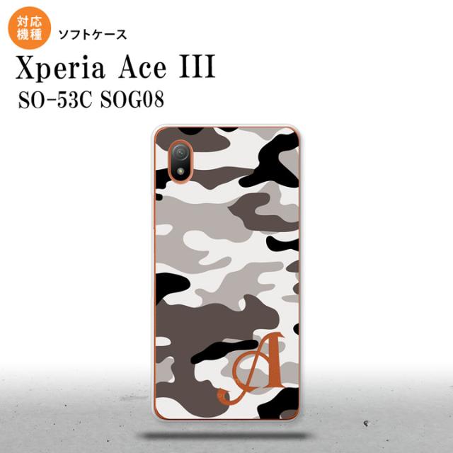 SO-53C SOG08 ワイモバイル Xperia Ace III スマホケース 背面ケースソフトケース ウッドランド 迷彩 A グレー +アルファベット 2022年 6月発売 nk-so53c-tp1145i