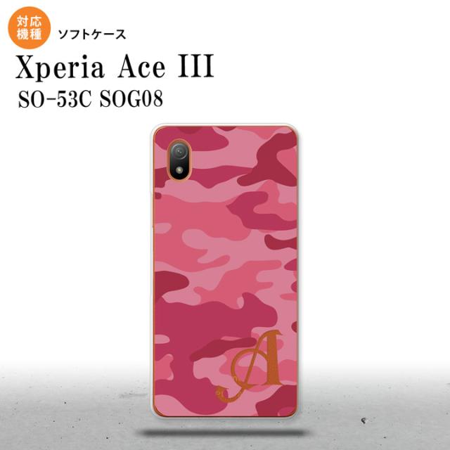 SO-53C SOG08 ワイモバイル Xperia Ace III スマホケース 背面ケースソフトケース ウッドランド 迷彩 A ピンク +アルファベット 2022年 6月発売 nk-so53c-tp1147i