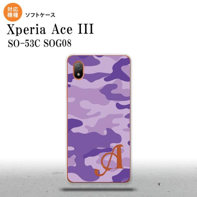 SO-53C SOG08 ワイモバイル Xperia Ace III スマホケース 背面ケースソフトケース ウッドランド 迷彩 紫 +アルファベット 2022年 6月発売 nk-so53c-tp1151i