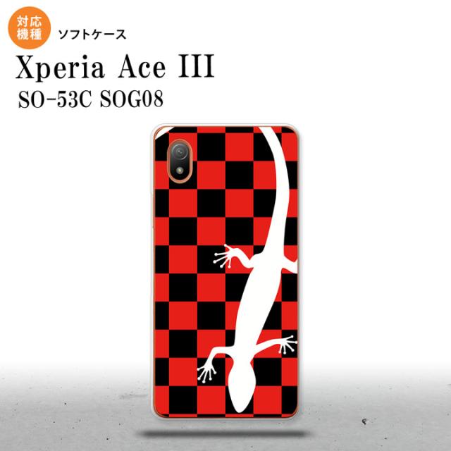 SO-53C SOG08 ワイモバイル Xperia Ace III スマホケース 背面ケースソフトケース トカゲ 市松 赤