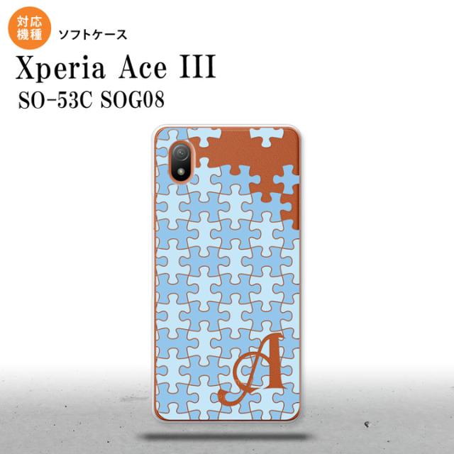 SO-53C SOG08 ワイモバイル Xperia Ace III スマホケース 背面ケースソフトケース パズル 水色 +アルファベット