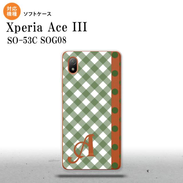 SO-53C SOG08 ワイモバイル Xperia Ace III スマホケース 背面ケースソフトケース チェック ドット 白 緑 +アルファベット 2022年 6月発売 nk-so53c-tp1523i