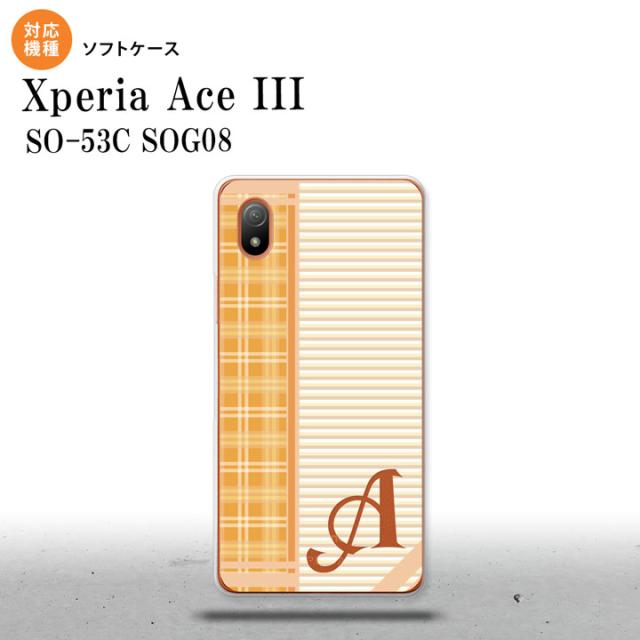 SO-53C SOG08 ワイモバイル Xperia Ace III スマホケース 背面ケースソフトケース チェック ボーダー オレンジ +アルファベット 2022年 6月発売 nk-so53c-tp1602i