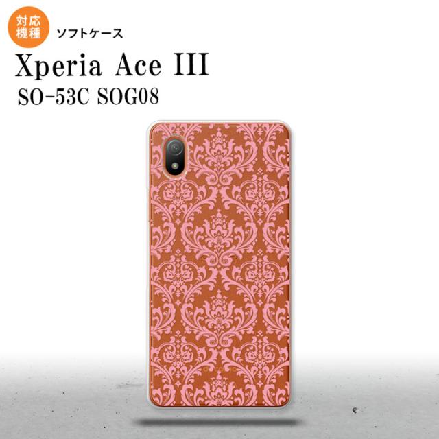 SO-53C SOG08 ワイモバイル Xperia Ace III スマホケース 背面ケースソフトケース ダマスク B クリア ピンク