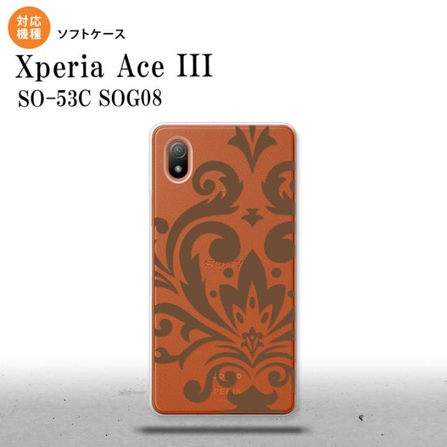 SO-53C SOG08 ワイモバイル Xperia Ace III スマホケース 背面ケースソフトケース ダマスク D 茶