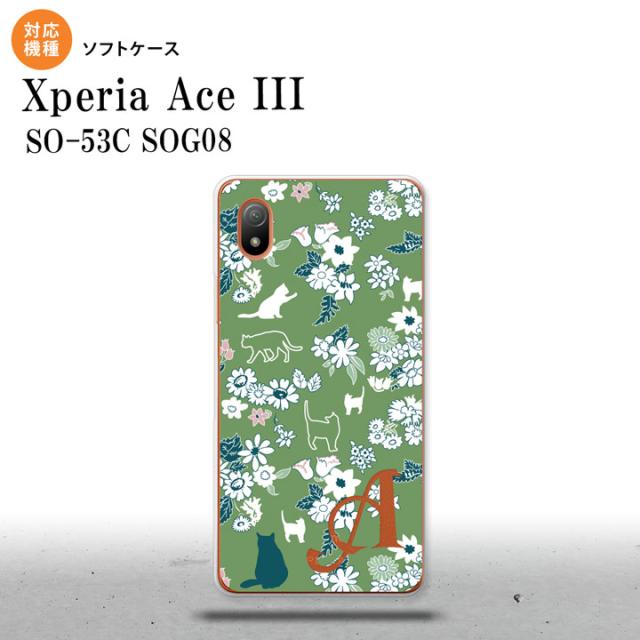 SO-53C SOG08 ワイモバイル Xperia Ace III スマホケース 背面ケースソフトケース 猫 花 緑 +アルファベット 2022年 6月発売 nk-so53c-tp1724i
