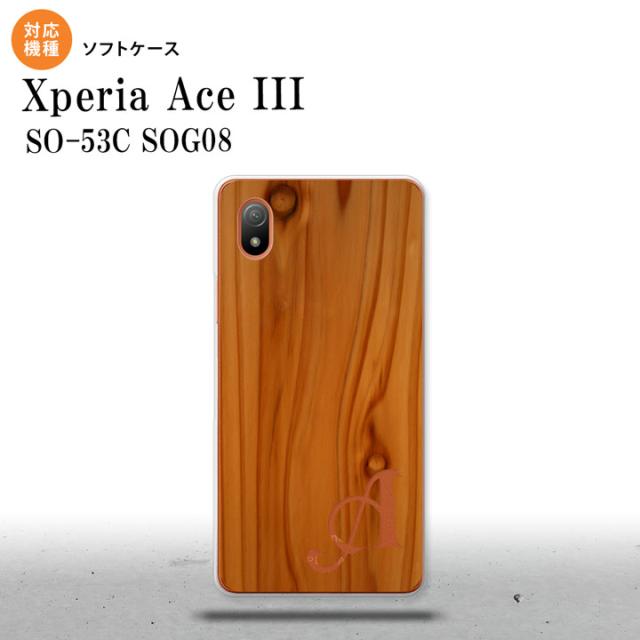 SO-53C SOG08 ワイモバイル Xperia Ace III スマホケース 背面ケースソフトケース ピクチャ 木目 茶 +アルファベット